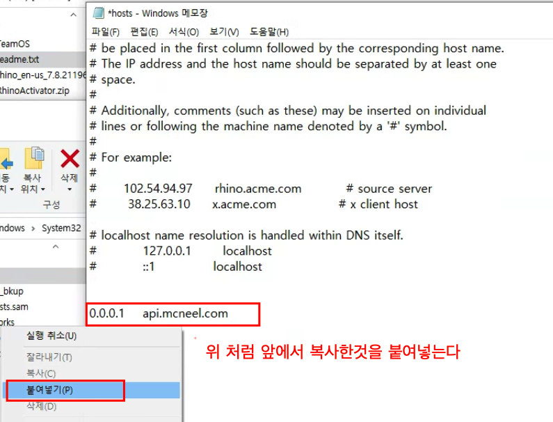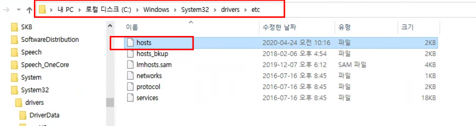 C:\Windows\System32\drivers\etc 경로에 복사하여 붙여넣는다.