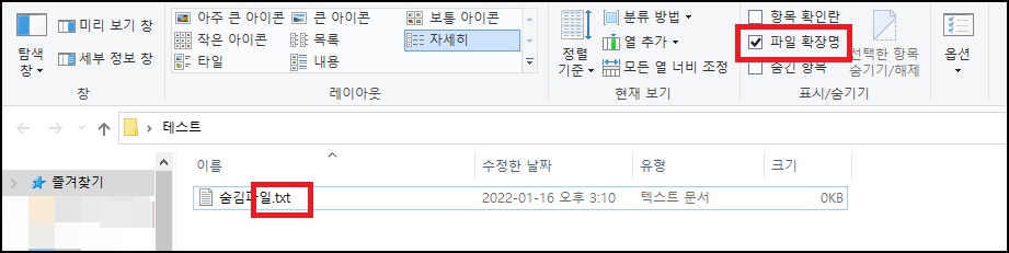 <추가 : txt 확장자 안보일때>