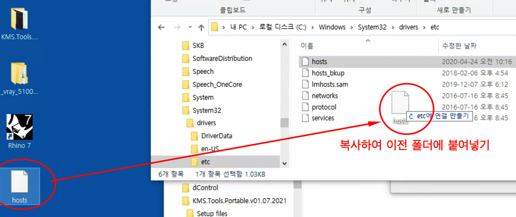 바탕화면에 저장한 hosts파일을