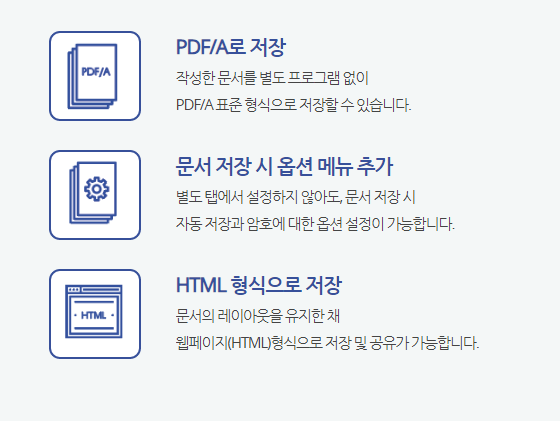 PDF/A 표준 형식으로 저장할 수 있습니다.
