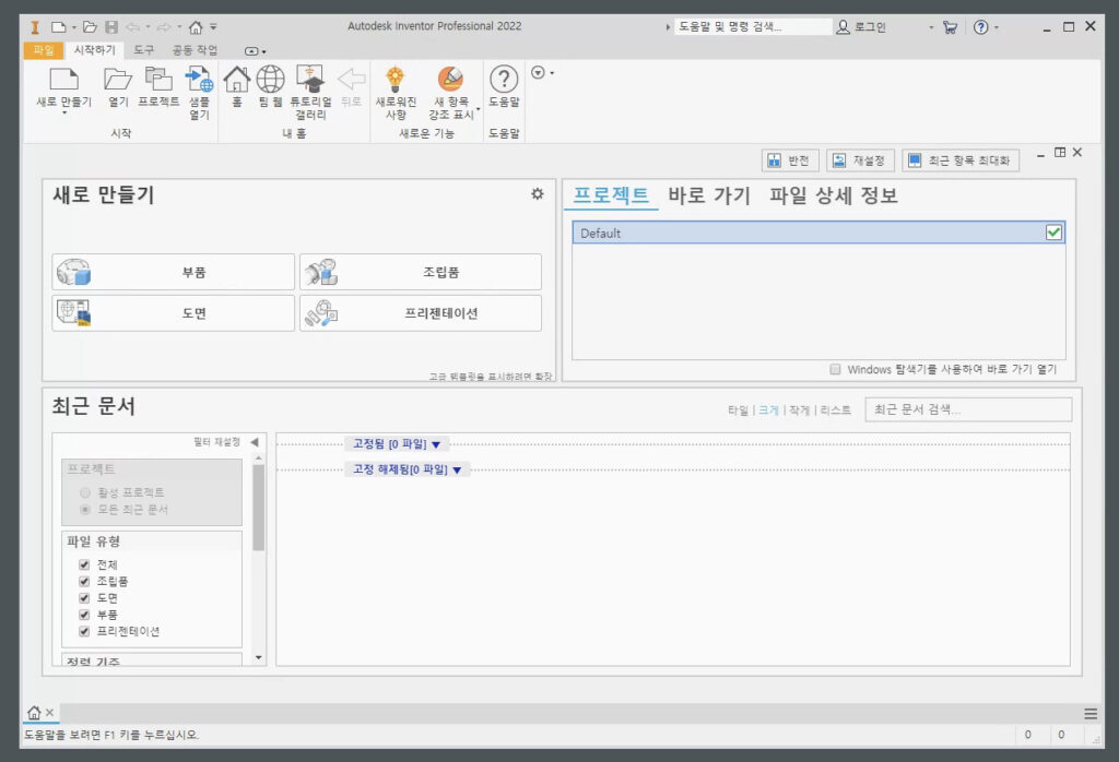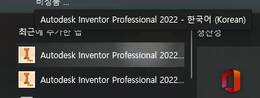 한글로 인벤터를 사용하려면 2022 영문을 설치후