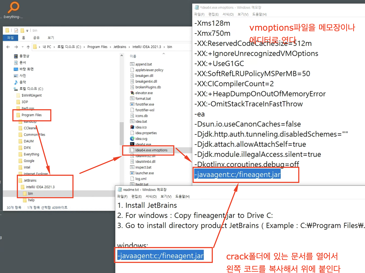 (예: C:\Program Files\JetBrains\IntelliJ IDEA 2021.3\bin)로 이동하여