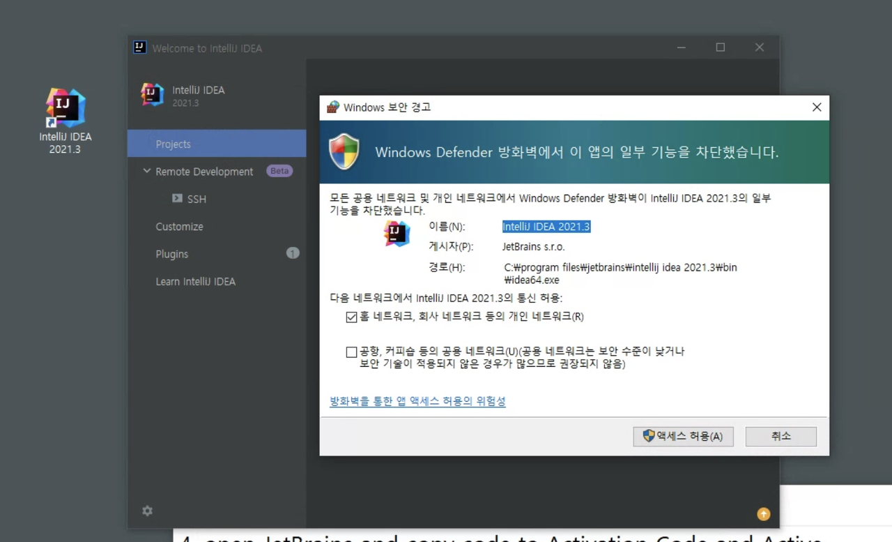 4. JetBrains를 열고 활성화 코드 및 활성에 코드 복사