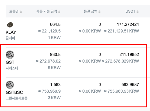 솔스트(GST)와 븐스트(GSTBSC)를 한눈에 KRW원화로 환산해서 보고싶으면