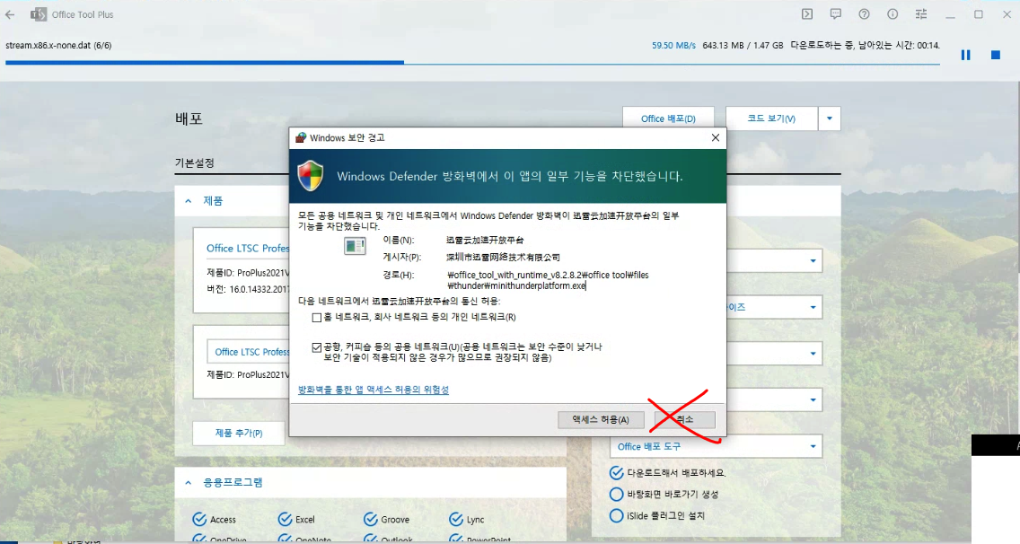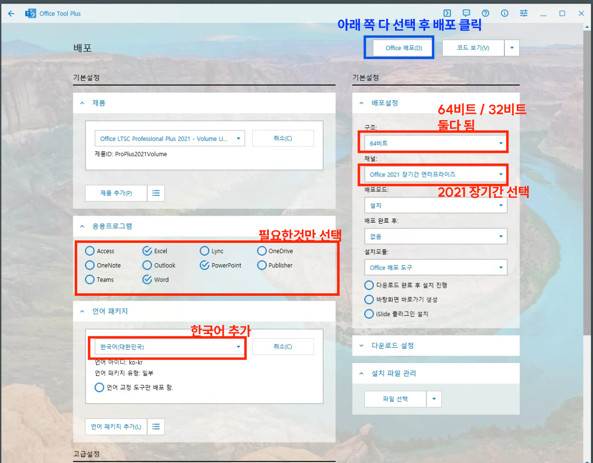 우측에 설치모듈 : Office 배포도구 > Office tool로 바꾸면 빠르게 다운로드가 가능하다.