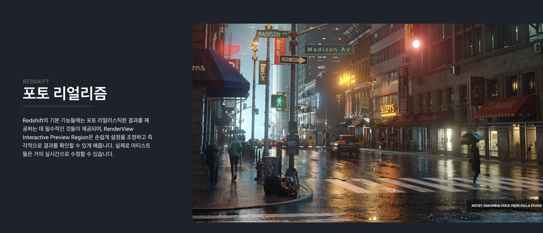 Redshift는 최신 고급 프로덕션 렌더링의 특정 요구 사항을 충족하도록 구축된 강력한 GPU 가속 렌더러입니다. 모든 규모의 창의적인 개인과 스튜디오를 지원하도록 맞춤화된 Redshift는 강력한 기능 모음을 제공하고 업계 표준 CG 애플리케이션과 통합됩니다.