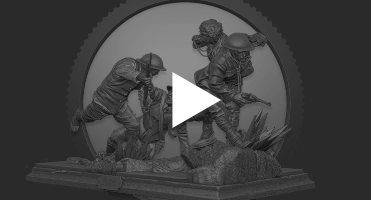 ZBrush의 새로운 Bas Relief 기능으로 놀라운 디테일의 엠보싱 표면을 만드십시오. 원하는 대로 모델을 배치하고 보이는 모든 메시를 선택한 메시에 투영합니다.